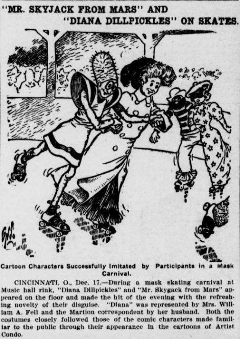 威廉先生就是这些其中的一位,他在1908年参加了辛辛那提举办假面滑冰嘉年华并穿着了一整套斯盖凯克的全套服装。“通过动漫角色的角色扮演,可以让更多的人熟悉并了解它们,使生活和动漫的联系更加紧密起来。”
