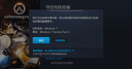 要提示的时候,守望先锋要求64位系统,所以windowsXP 32位是肯定不行的,请勿尝试。