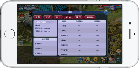 在“技能”处玩家可查看当前帮派技能的研究进度