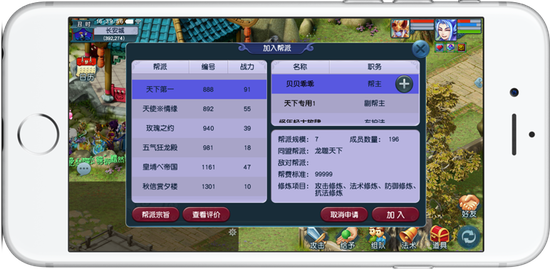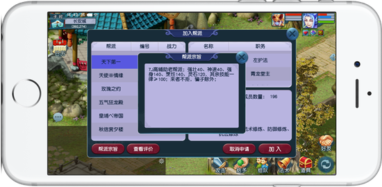点击想要加入的帮派可查看帮派评价,帮助玩家从侧面了解该帮派