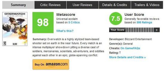 虽然《斗阵特攻》身披着暴雪光环,似乎火气来已经是理所应当的事情,不过游戏素质确实很优秀,所以不仅是玩家的赞誉,各大媒体对于《斗阵特攻》的评价也是着实不低,今天metacritic公布了对斗阵特攻的综合评分,高达98分,而此前的《神秘海域4》也只获得了93分。
