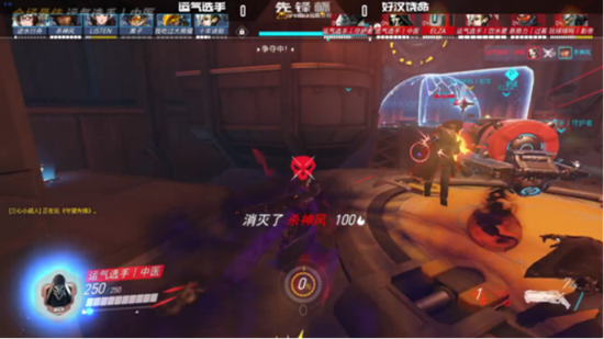 下半场VET用自己独到的游戏理解给运气选手上了一课,双美的阵容搭配托比昂以及堡垒的防守,还有远程秩序之光的蓄力球以及狂鼠的榴弹几乎封住了运气选手所有的进攻路线,美不断的冰墙堵门和卡位多次创造出1v1的局面,使得运气选手不断的被减员。虽然中途防守方也被击杀过几名人员,不过运气选手并没有抓住机会进攻,相反,一直存活的美不断的在近处利用冰冻削减敌方进攻的有生力量,远程又可以利用冰墙输出。至始至终运气选手都没有通过A点的大门,直到比赛的结束。VET再下一城。