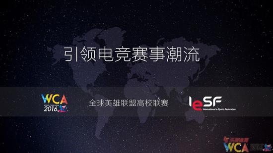 在这个点上,WCA也做了很多事情,在今年下半年9月份的开始,我们将会举办全球的《英雄联盟》高校联赛,这个部分在座的学生朋友们要听好了。同学们,这个比赛是国际型比赛,有43个国家的高校队伍参与的《英雄联盟》比赛,会按照学期制定一个备赛赛制的模式。我们希望这样一种方式能够让更多的高校群体感受到电竞魅力,同时也希望通过电竞这样一个特殊的方式打开国际名校之间的一个交流体系。