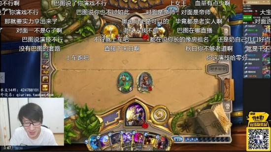 而对于拍戏,巴图直言没有什么成就感,远不如游戏直播中即时就能获得的成就感受,这也是为什么热衷于游戏,游戏直播则是给了他增加成就感同时又能与粉丝互动的直接感受。虽然他在炉石圈子曾经有过对决赛100强的经历,本以为其晚间与炉石主播四大天王之一秋日的对决胜负只在55之间,没想到从开局一路顺风局,全程小小吊打秋日,赛后巴图异常兴奋能够在于秋日的对决中少见的压倒性胜利,这也是直播平台游戏直播对新生代艺人的魅力吸引所在,也积极回应考虑如转型线上主播或将落户全民TV的可能。