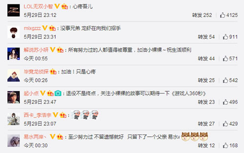 尽管昔日两人是情敌,但在小裸裸微博宣布退役之后,小智也是感伤不已。关系颇好的两人在微博上的互动,也让人猜疑是不是退役后的小裸裸会加入到主播的行列之中。联想到小智在全民TV直播,究竟小裸裸是否会和情敌握手言和一起在全民TV,还是另有打算,还是要看小裸裸自己的打算,我们要做的不仅仅祝福一句小裸裸人生赢家之外,还希望他能够再次出现在我们面前,带来他帽子戏法般的操作。