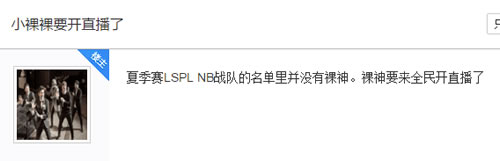 在长微博中,小裸裸详细讲述了自己的电竞之路,一路上的坎坷也令人唏嘘。帮助EP打上LPL后背冷藏,帮助NB拿到LSPL第一却又遭遇队内韩国选手膨胀导致队伍失利,在这些战队成绩失败的背后,有着他每天孜孜不倦冲击排位的努力。由于实力强劲,在电一高分局之中,他呼风唤雨掌控雷电,和V、麻辣香锅等众多职业选手关系良好,但最后却因为客观原因,离开了自己心爱的战场。曾不远千里从四川来到上海打比赛的他得到了女友的支持,现如今,唯一能够让他感到安慰的,也许就是他的女友了。