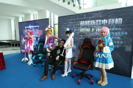 蓝鳍TV新款电竞椅上市,观众争相体验。