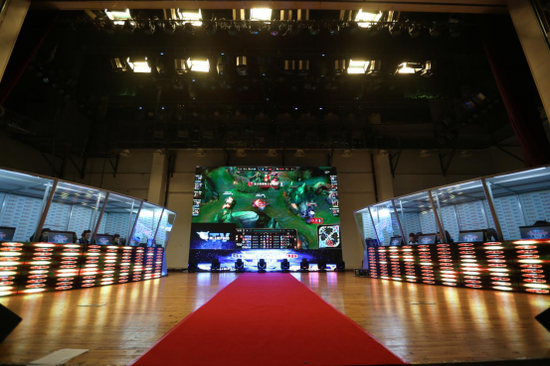 White55开和现场的观众短暂交流后,第一届蓝鳍杯高校电竞联赛南京站——线下决赛正式开始。