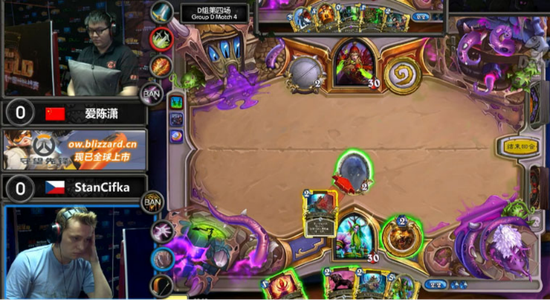 第一盘贪睡之萨满用动物园术士迎战StanCifka的中速猎人,术士和猎人的起手曲线都十分理想,1、2、3费随从都有,但是动物园术士在铺场上更具优势,很快占据场上主动,猎人疲于解场,尽管在中后期阶段StanCifka连续打出两个兽群呼唤,但是猎人的血量已岌岌可危,术士用手中的力量代价以及刚刚抽到的末日守卫11血斩杀了猎人,1:0,贪睡之萨满先声夺人取得领先;第二盘萨满拿出瓦王战士对阵StanCifka的中速猎人,战士这把牢牢把握住了场面节奏,而猎人缺乏过牌,在8费回合StanCifka就打光了所有手牌,而战士8费拍下罗斯,继续拉开卡差,StanCifka在10费回合选择了认输,2:0,贪睡之萨满再下一城拿到赛点;第三盘StanCifka依旧使用猎人,而萨满这边是奇迹贼,猎人随从站场抢血,节奏较快,而盗贼解场牌摸得不多,猎人8费回合便将盗贼打至3血,尽管盗贼使出浑身解数清光了猎人场面,但猎人仅需要一点伤害便可以击杀盗贼,StanCifka扳回一局,1:2落后;第四盘StanCifka的超生德利用2费激活上的紫罗老导师占到了很大优势,德鲁伊5费打出野蛮咆哮将萨满的盗贼打至7血,场上同时站了4个随从,萨满的盗贼无力回天,选择认输,2:2双方回到同一起跑线;决胜盘,萨满的奇迹贼面对StanCifka的宇宙术士打出了极限过牌操作,在6费回合隐藏加基森,7费将术士压至9血,同时有3个随从站场其中包括12-12的大范,术士的8费除了扭曲虚空清场别无他法,最终盗贼用火车王、刺骨击杀了仅有9血的术士,3:2,贪睡之萨满击败了对手进入胜者组。