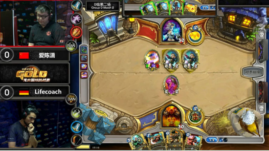 D组小组赛首轮第二场的两位选手都参加了2015年的暴雪嘉年华炉石世锦赛,两位选手可谓实力强劲,但是中国选手爱陈潇本场的状态似乎欠佳,以 0:3 败于德国选手Lifecoach,跌入败者组,后者将与贪睡之萨满争夺胜者组的一个8强席位。