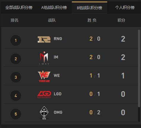 在与IM的比赛中,面对AmazingJ领衔的这支升班马,OMG全场被压制,在对局的劣势非常大。而在第一场比赛与老对手WE的对决中,其中第二局OMG拿到大龙之后指挥不当,5打4却被WE团灭,随后一波被带走,这场比赛输的非常遗憾。