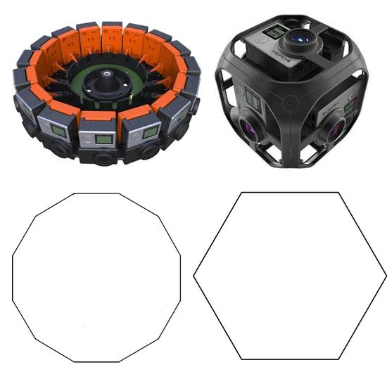摄像头越多,后期的拼接效果越好想把VR做成影视级,6摄像头的方案并不现实。好比用横线组成一个圆,只有横线越多,才能无限接近于圆。为了达到影视级别的VR拼接,仅仅是6台机器还远远不够。而且就算是影视级别的拍摄,为了追求画质也要使用更为专业的摄像机。简单脑补一下,一台这样的设备2个专业的摄影师才可以操控,那如果6台组合到一起,摄影师就一定不是“人”了。所以不考虑影视级别的话,Gopro Omni的方案在现阶段最为成熟。