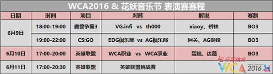 本届花妖嘉年华成都站,WCA将携中国最知名的职业战队和选手为大家献上每天3小时的对战表演。此次表演赛将有《魔兽争霸3》、《CS:GO》、《英雄联盟》三大经典项目,顶尖职业战队和选手将为玩家们带来一场热血沸腾的电竞盛筵。