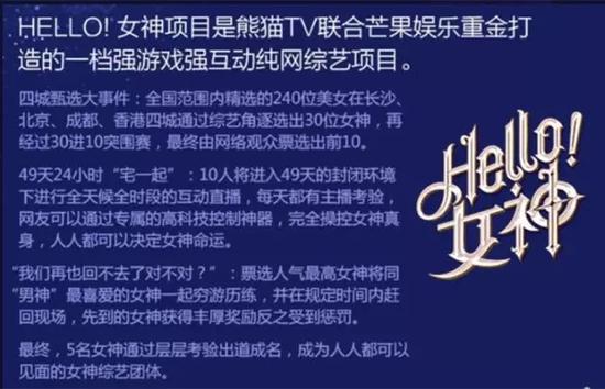 当知道这档节目的是熊猫TV,芒果娱乐和腾讯视频联合打造的时候,小编的内心是震惊的。你们这是要逆天啊!这三方不正代表了国内直播、内容、视频门户的金字塔地位吗?