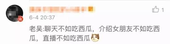 直播好玩的地方就在于展示了每个人真实的一面。“国民老公”和“国民男友”之间就上演了一出“吃瓜少年访谈录”。Wuli男票凡凡一直吃瓜停不下来,起码说了三遍“这西瓜真好吃”,两人大谈自己的理想型,而老公还要给凡凡介绍女主播。围观网友看到两人不为人知的另一面,内心的OS是这样的!