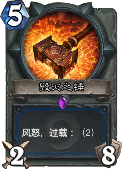 卡牌描述:奥格瑞姆·毁灭之锤将他的传奇武器赠与了萨尔。他的名字只是纯属巧合。