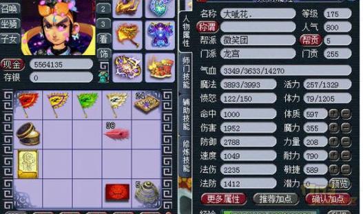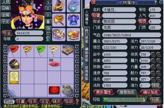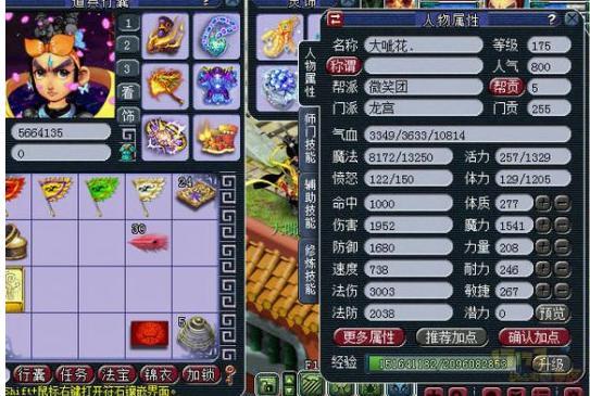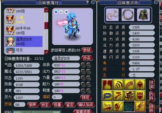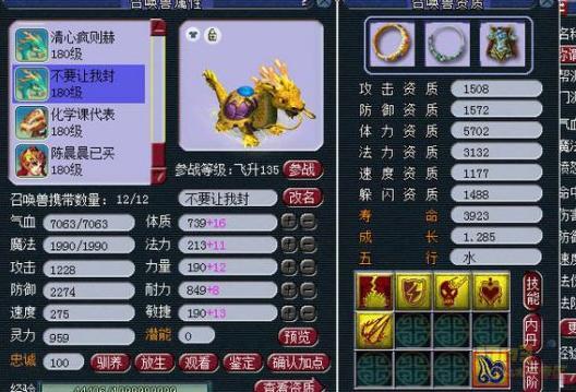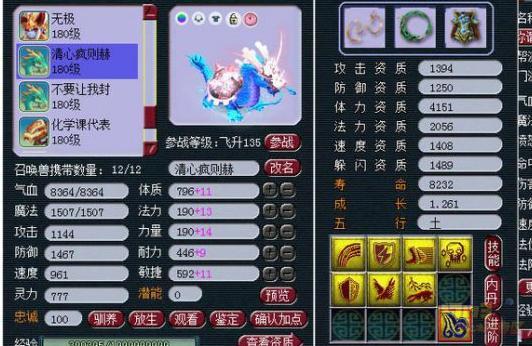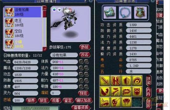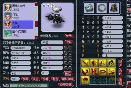 (注:所有属性的图片都是变完雨师卡的,也就是加了30点灵力,还有这个号的神速才29,临时也一般)