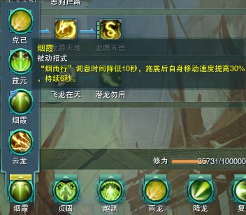 不推荐上中品逍遥散和下品逍遥丸 因为烟雨行后的30%跑速已经让我们能一次空格跳木桩 这三个速度加太快特别容易掉下去 手法好的可以吃下品逍遥散试试