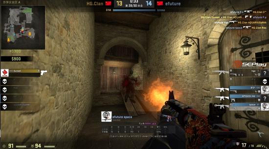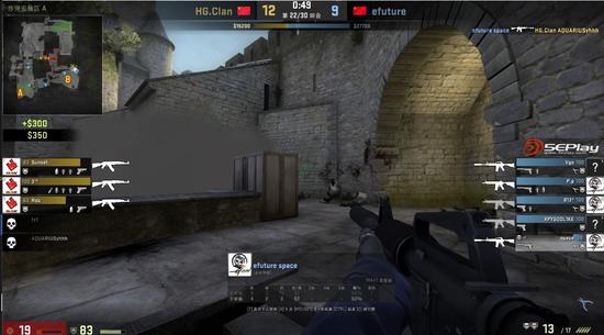 第23回合HG有着明显的打法变化,在A看到人后果断中转B,efuture的回防速度是极快。HG在连失3分的情况下经济很差,强起只打掉对手一把长枪,efuture狙击偷人很成功。