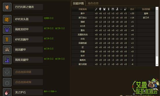 发动技能为拔刀极+攻击小+弱点特效,相信玩大剑的几乎人人都有这么一套装备吧,这个装备有最省钱的2个升级方法,一是保留护石换部分装备,那么我们可以配出凝神+拔刀,配装如下图,