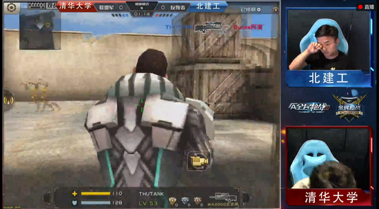 爆破模式抢4,首局双方残血1V1,两人单挑一梭子子弹谁也没打死谁,清华选手箱子卡位收掉人头。随后北建工A、B点各安包一次连扳两局。此后清华大学TANK发威,一局四杀稳住连败颓势拿到上半局赛点。但北建工始终贯彻反叛者埋包守点战术将比赛拖入决胜局,决胜局清华加快进攻速度,在北建工埋包路上全歼对手拿下上半局。