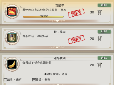 既然选择了当菜农,就也好好的利用帮会菜地。而且种菜有很多的成就。