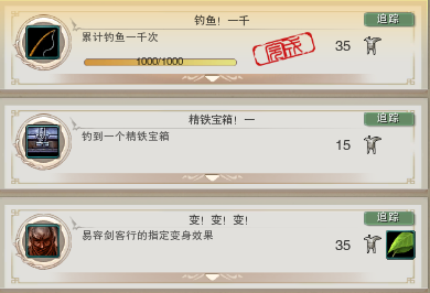 钓鱼的这些成就真心就是钓鱼就好了,紫色鱼,宝箱,戏虎图,剑客行残页。当然钓上来普通的鱼也是可以卖钱的,卖出去的价格也妥妥的会比鱼饵的价格高,绝对可以回本。