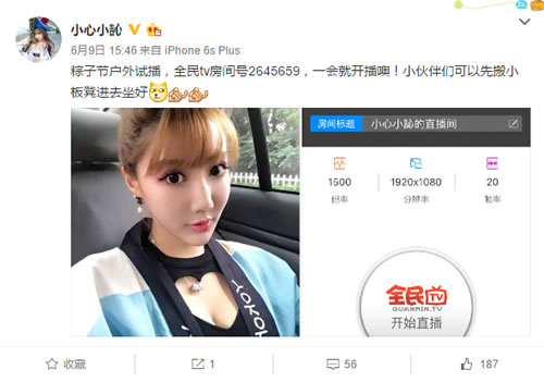 小訫微博透漏在全民TV开播