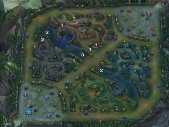 在草丛中标出的数字是SofM欲从该草丛发起gank的次数。面对NB战队,SofM提前预知到了对方打野Swift打完蓝Buff后会gank下路,所有SofM当打完自己的红Buff后,前往下路进行反蹲。这也是他在这六场比赛中唯一的一次反蹲下路。