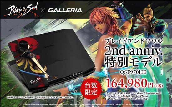 除了两周年纪念活动及壁纸外呢,官方还联合GALLERIA(环球免税店),共同推出了一款剑灵定制版笔记本电脑。