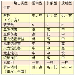从上表伤害来看它跟单发伤害是有挂钩的,由于扩散型打炮比较依赖打单发,所以它拥有最高的蓄力炮击收益,其他同理。