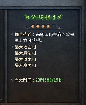 2。称号:公会中的高级成员(会长、副会长、长老)可在NPC‘使者’领取称号,最多可领取6个,持续时间24小时;