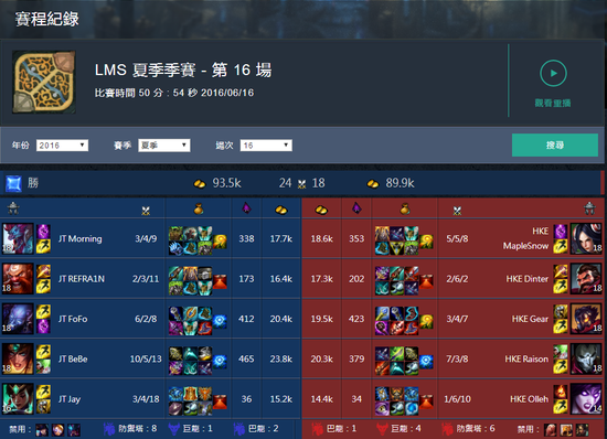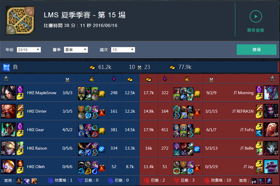 第二场比赛时今日的焦点之战,HKES战队将迎战周董的J战队。在上周的比赛中HKES战队豪取两连胜,可谓是风投正劲,当然J战队也不逞多让,在第一周的比赛中他们强势的战胜了XG战队也和实力相当的M17战队打成平局。所以本场比赛,只要J战队可以战胜HKES他们就将暂时性的登上LMS夏季赛的投把交椅。两场比赛下来,J战队也打的足够的给力和生猛,特别是前世界冠军Bebe,两场比赛一场拿出烬,而另外一场则拿出了成名英雄轮子妈,最终两场比赛都成功的Carry了队伍,获得了最终比赛的胜利!