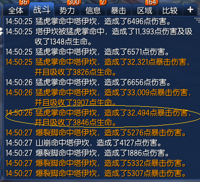 目前发现的技能有(我自己之前发现过,只是沉默),爆裂炎炮,夺命剑,猛虎掌,如果这些职业的技能在战斗时未能正确的触发烛魔效果,那就等于这些职业的武器,比其他职业的武器,起码下降20%的性能,那么玩家怎么更轻易的看,这些BUG到底有没有触发到你的职业武器上呢,只要在战斗里,勾上,我的攻击,我的爆机攻击就可以了,其他的全部去除勾选,那么更清晰的看到,有些时候别光打木桩,打木桩发现此问题的比较少,在各大副本的战斗中,出现的频率就高,如今发现这BUG,希望CH,版主能反映这个问题到开发团队。