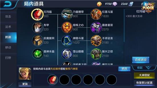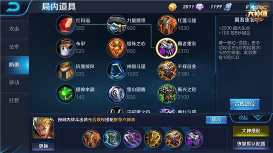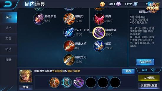 中期装备的选择至关重要,它直接影响后期装备的方向以及成型速度。半肉出装的亚瑟可以先选择将红玛瑙合成熔炼之心再转成红莲斗篷,凭借装备的被动效果和二技能能够在线上快速清兵线。而且一、二技能配合使用的消耗更是让敌人吃不消。在鞋子想选择上,根据对面阵容进行选择,亚瑟的鞋子一般多是减免控制的抵抗之靴,防止被减速放风筝。接着出到亚瑟的核心输出装暗影战斧,有着破甲和冷却属性的加成,这样在团战中亚瑟也能打出不俗的伤害。