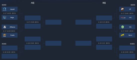 八支战队分两组进行小组赛(BO3),积分前二的战队晋级淘汰赛