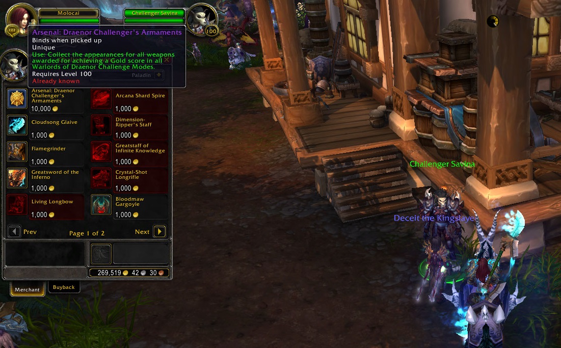 另外需要提醒的一点,该物品想购买必须要完成WOD黄金挑战,虽然黄金挑战的NPC在前夕版本依旧保留,但是黄金挑战不会再开放了。