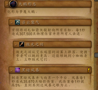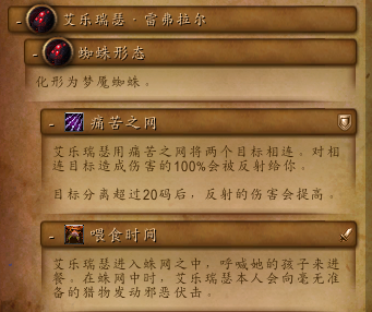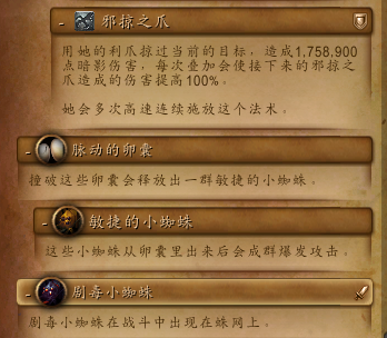 本次raid测试用的是坦克专精,比较坑的是4点半开始测试,大家4点就准备上线了,结果因为服务器问题,卡蓝条卡了足足有40多分钟,所以这个BOSS实际测试时间比较短。 还没摸清史诗模式的机制,测试就结束了,所以这个BOSS稍微了解下技能就好了。从视频中看到,已知的BOSS关键技能在于小蜘蛛的处理问题上,应该确保BOSS飞天下来之前处理完小蜘蛛或第一时间让BOSS远离小蜘蛛。