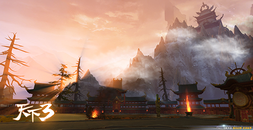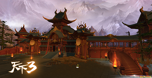 进入试炼场后首先看到的就是大门,气派非凡,背景是终年积雪的高山。