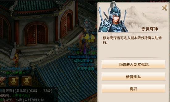 首先点击活动选择副本去到赤灵尊神处接任务哦,最少3个队友,版版建议组满5个人保险点哦!组好队伍就点击继续进入副本,然后选择创建黑风洞副本,这里要求全部队友确定同意进入哦!如图: