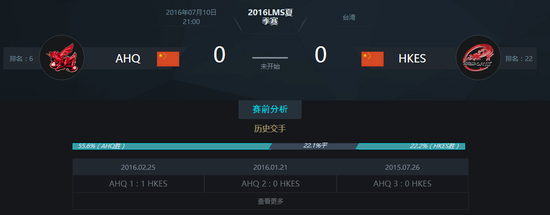 本周的六场比赛中最具有看点的莫过于HKES和AHQ的这场较量了,AHQ战队在最近似乎遇到了一个瓶颈,虽然在LMS赛区也可以说是横着走了!但是无论如何,始终还是没有办法击败后来居上的闪电狼战队。而本场比赛,面对渊源颇深的HKES战队,AHQ是肯定不会留力的,他们需要更多的积分死死的咬住闪电狼战队!而本次交手,HKES也会拿出百分百的实力阻击AHQ!