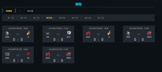 7月8日,LMS夏季赛即将迎来第四周的比赛。前三周的比赛打完,目前闪电狼战队五战全胜高居榜首,而在夏天刚刚被周董周杰伦收入囊中的JT战队目前三胜一平保持不败积10分位列小组第二,AHQ战队则因为在第二周的收官战中输给了闪电狼战队目前居第三位。上赛季季军M17目前开两胜一平两负名列第四,而MSE与最近状态不佳的HKES同分位列第五第六。