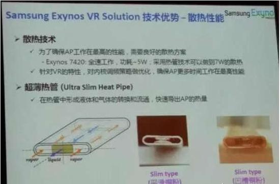 VR产品的性能很重要,为了持续稳定的性能,散热技术是很关键的。举个例子,Exynos 7420全速工作时功耗是5W,如果采用热管技术可以做到7W的散热。对内核调频策略做优化,能确保AP更多时间工作在最高性能。