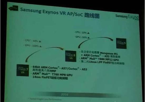 三星半导体针对VR推出Exynos VR系列应用处理器,目前最成熟的、已经开始量产的产品是我们的Exynos VR7,是去年推出的第一款采用14nm FinFET超低功耗制程的产品。今年我们推出了第二代产品Exynos VR8,CPU处理器采用了定制的Mongoose M1,从性能、功耗上都有很大提升。