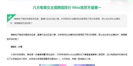 最近Miss大小姐的头条新闻铺天盖地,不管是电竞圈还是娱乐圈,只要是跟Miss沾一点边的就轻轻松松上头条,可见大小姐俨然已经成为明星,各路主播争相贴靠,靠着Miss的风头红一把。