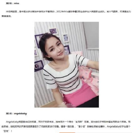 最不要脸的还属一线女明星Angelababy,和Miss两个人明明井水不犯河水,却要拿Miss蹭热搜。在电竞圈,像Miss这样拥有无人能敌的技术以及天然纯真的样貌一定是非常难得的。论技术,一个英雄联盟小白怎么能超越Miss女神,论样貌,baby也没有Miss天然。大小姐是不是最高颜值大家都是心知肚明!难道是在电竞圈骂声太重了,才贴靠Miss赢得关注?