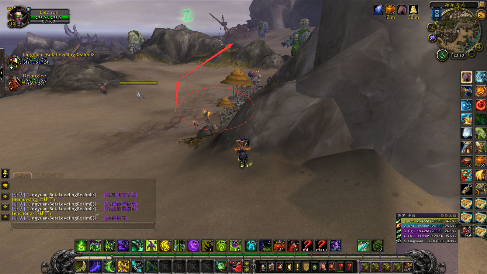 击杀完女娜迦之后回到蛇BOSS这边穿过这里的山洞,过山洞之前检查进度,最好是75%,山洞两侧门口各有一个巨人小心不要ADD,然后进去有一波地精和一波鱼人(鱼人会来回跑),清理掉+10%,出口的旁边(出口图红圈位置)也有一波鱼人清理掉+5%。