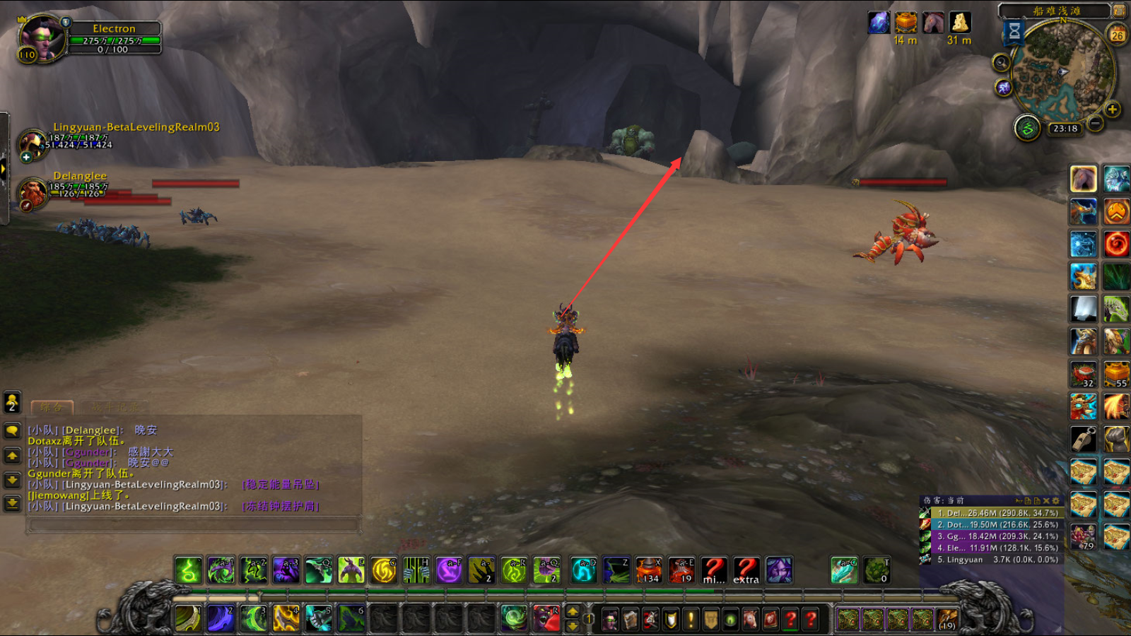红圈内的小怪中间会有多群小螃蟹(非精英)的怪,会给坦克挂减速同时伴随物理伤害的DOT,如果没有办法解除移动限制,可以让治疗提前去引下一波怪提升效率。