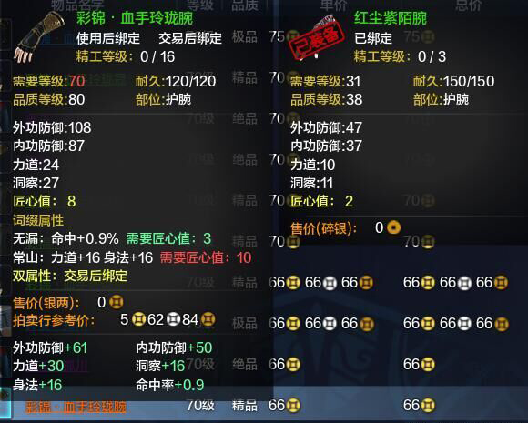 杂乱的会掉一个档次,由于双属性很难出相同的,所以你在拍卖无法找到相同属性的价格。