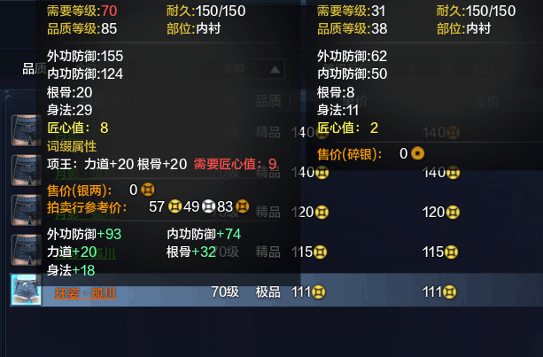 我们就可以知道我们刷的属性能卖多少金了。